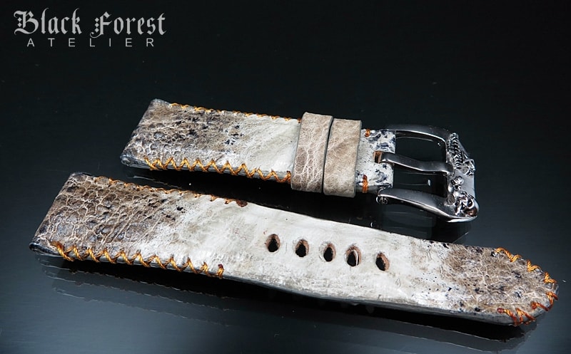 24mm/22mm Padded Handmade Toad/Frog Skin Strap Tribal Stitching